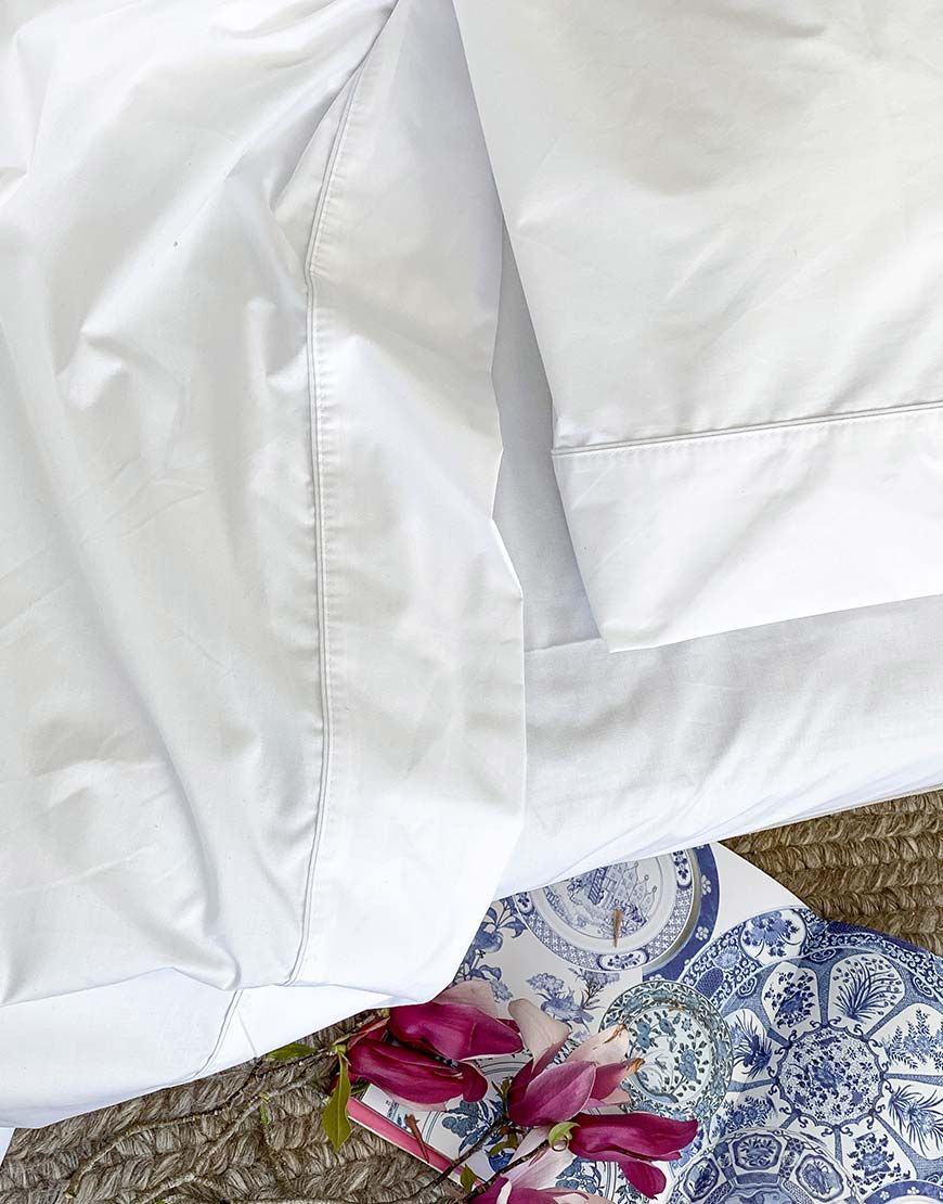 Las sábanas de cama son de percal de calidad hotelera, super suavecitas. Tienen estampa en funda de almohada y esbozo de la sábana plana, la sábana ajustable es blanca lisa.